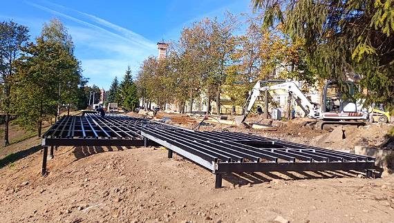 Под мостом через Черемуху выставлены разметки по устройству габионов, где оборудуют смотровую площадку, основание балкона уже подготовлено. Изначально здесь планировали постелить террасную доску из полимера, но в итоге остановились на натуральном дереве.